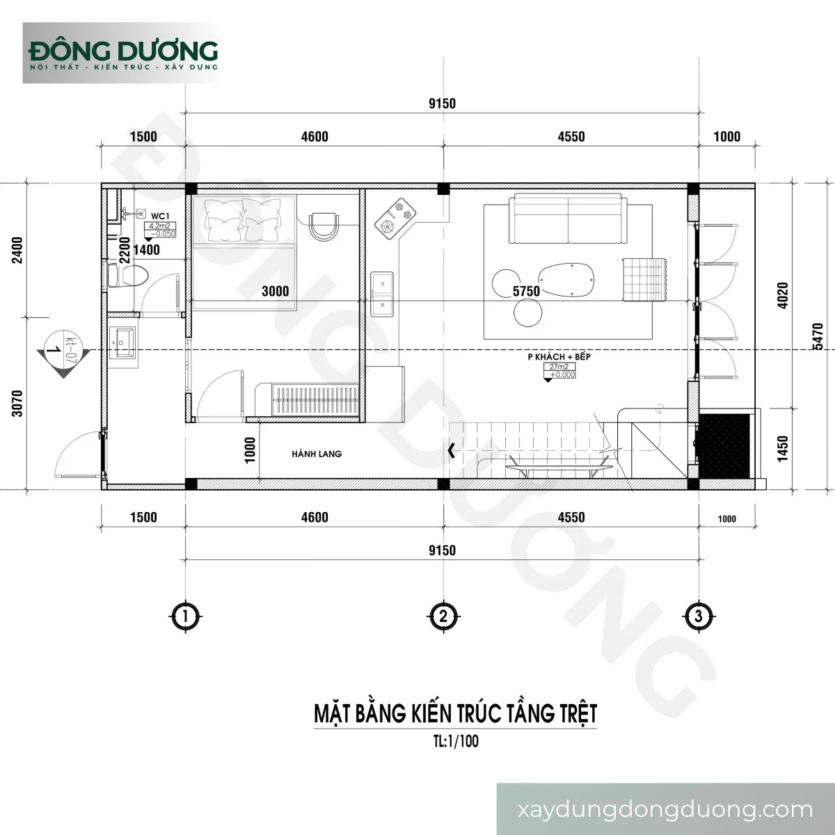 – Thiết kế: Đây được hiểu là một bộ thiết kế hoàn chỉnh bao gồm “kiến trúc, kết cấu, công năng (điện, nước, internet,…), nội – ngoại thất, sân – tường rào – cổng (nếu có)”. Ngoài ra, Đông Dương còn cung cấp bản vẽ 3D để gia chủ có cái nhìn toàn diện, chính xác về ngôi nhà tương lai của mình.