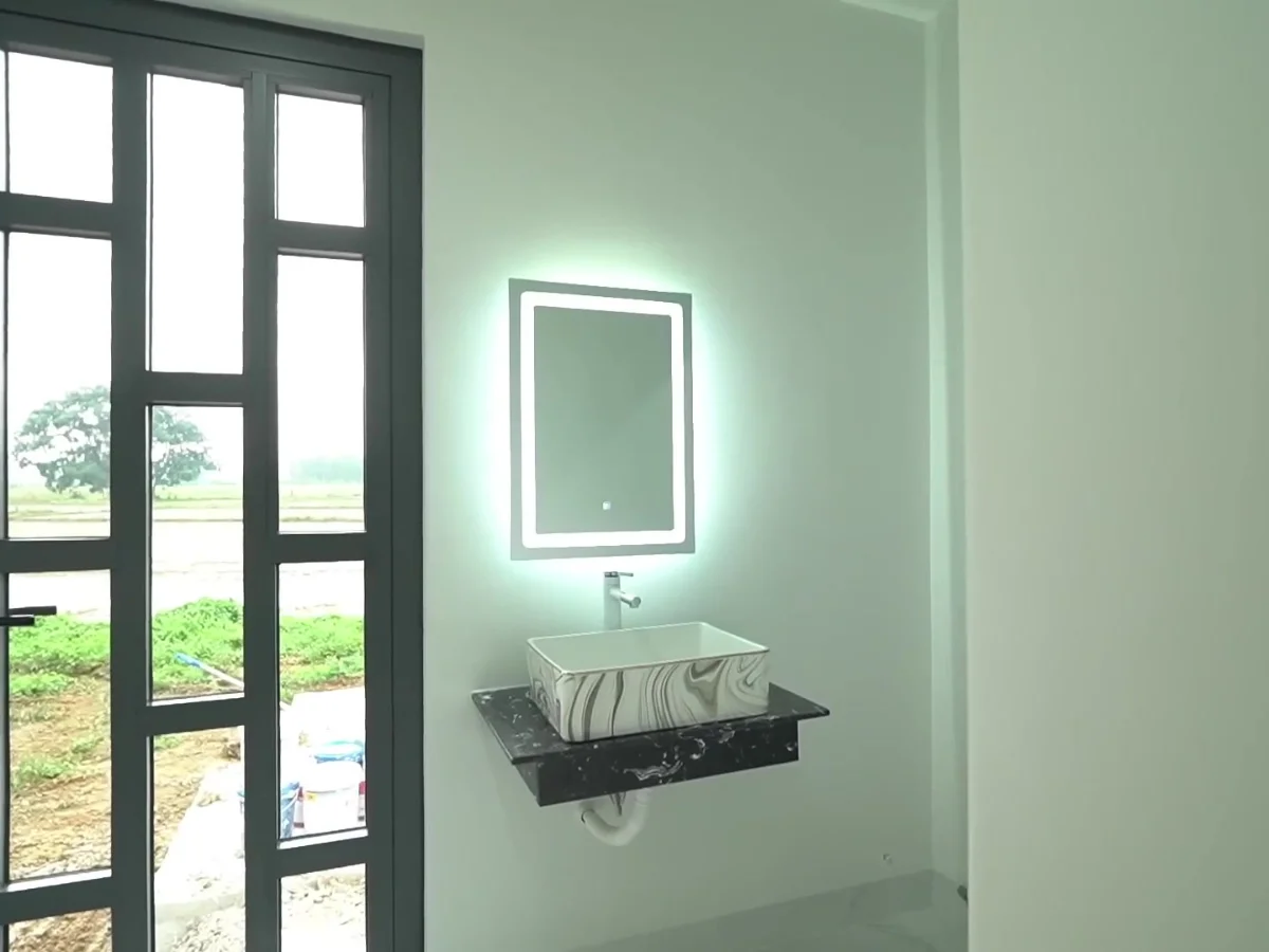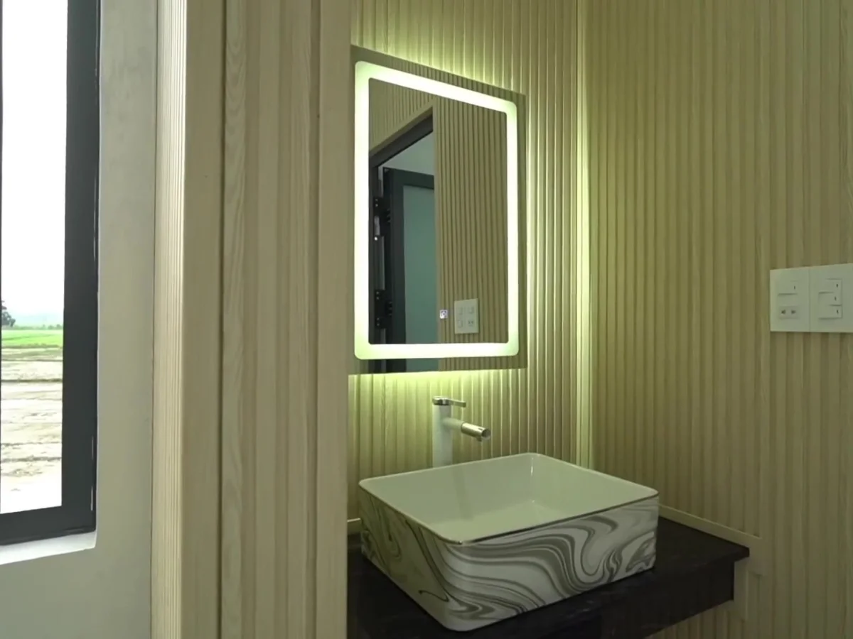 Lavabo đặt ngoài nhà vệ sinh để tối ưu công năng cho gia đình nhiều người.