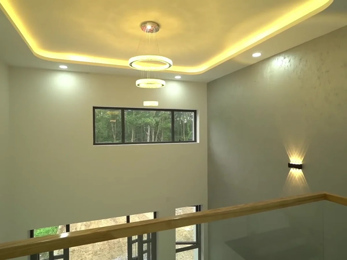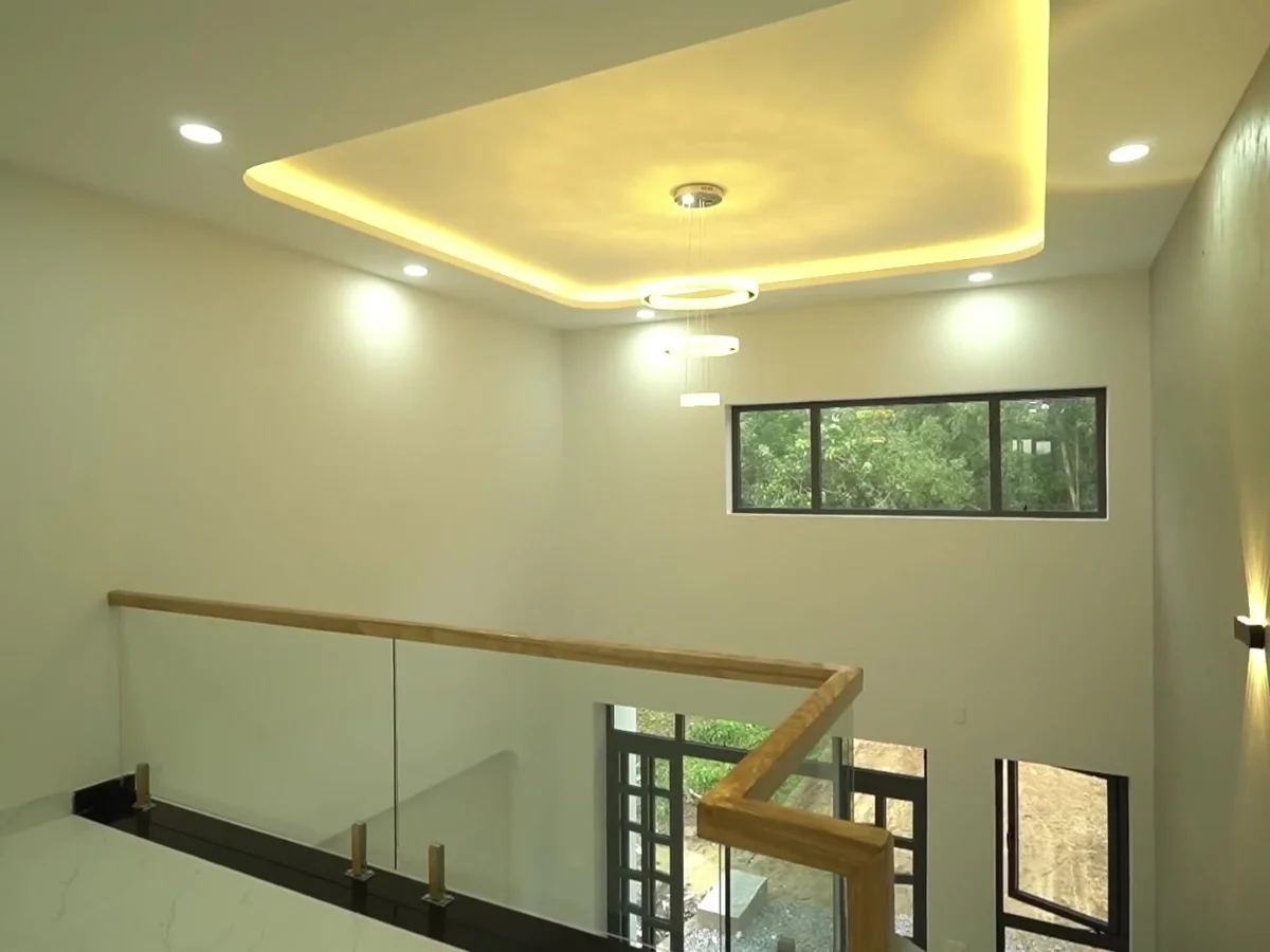Hành lang tầng lửng được bố trí cửa sổ lấy sáng cho cả không gian lối đi.