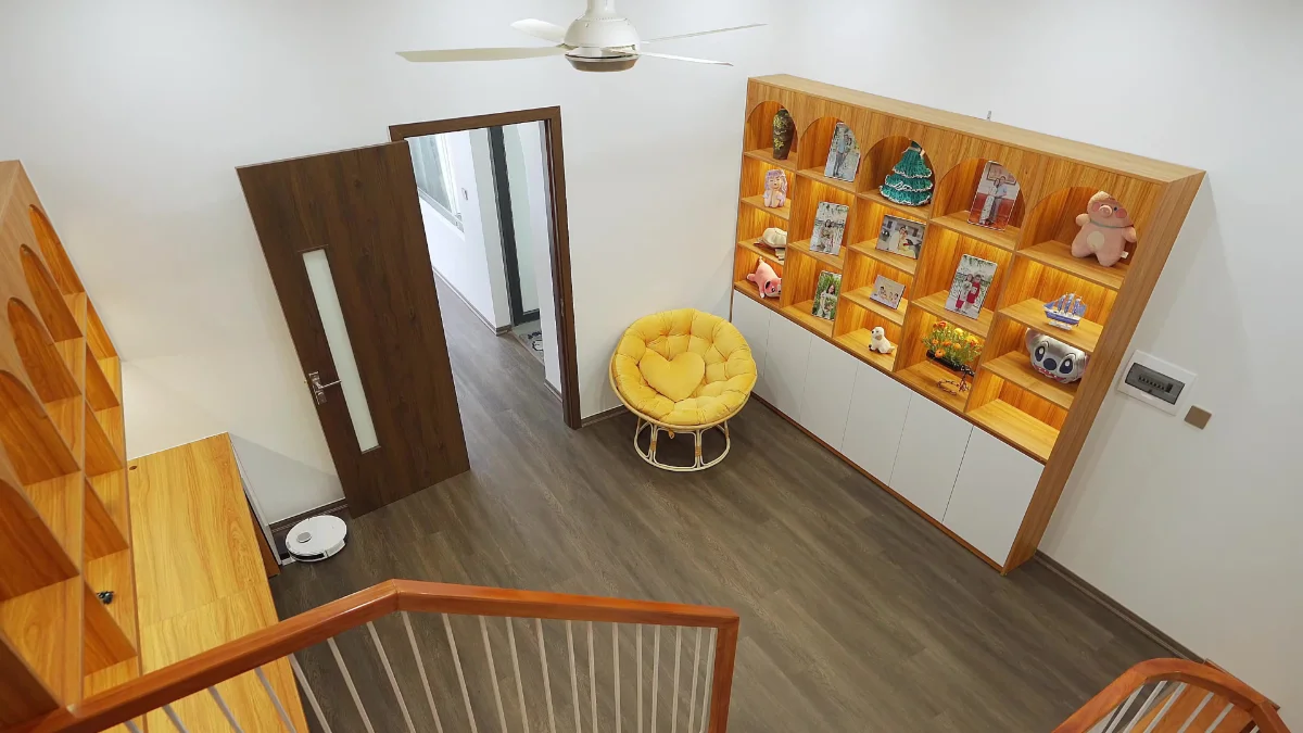 Tông màu gỗ với trắng khiến không gian đầy ánh sáng lẫn ấm áp.