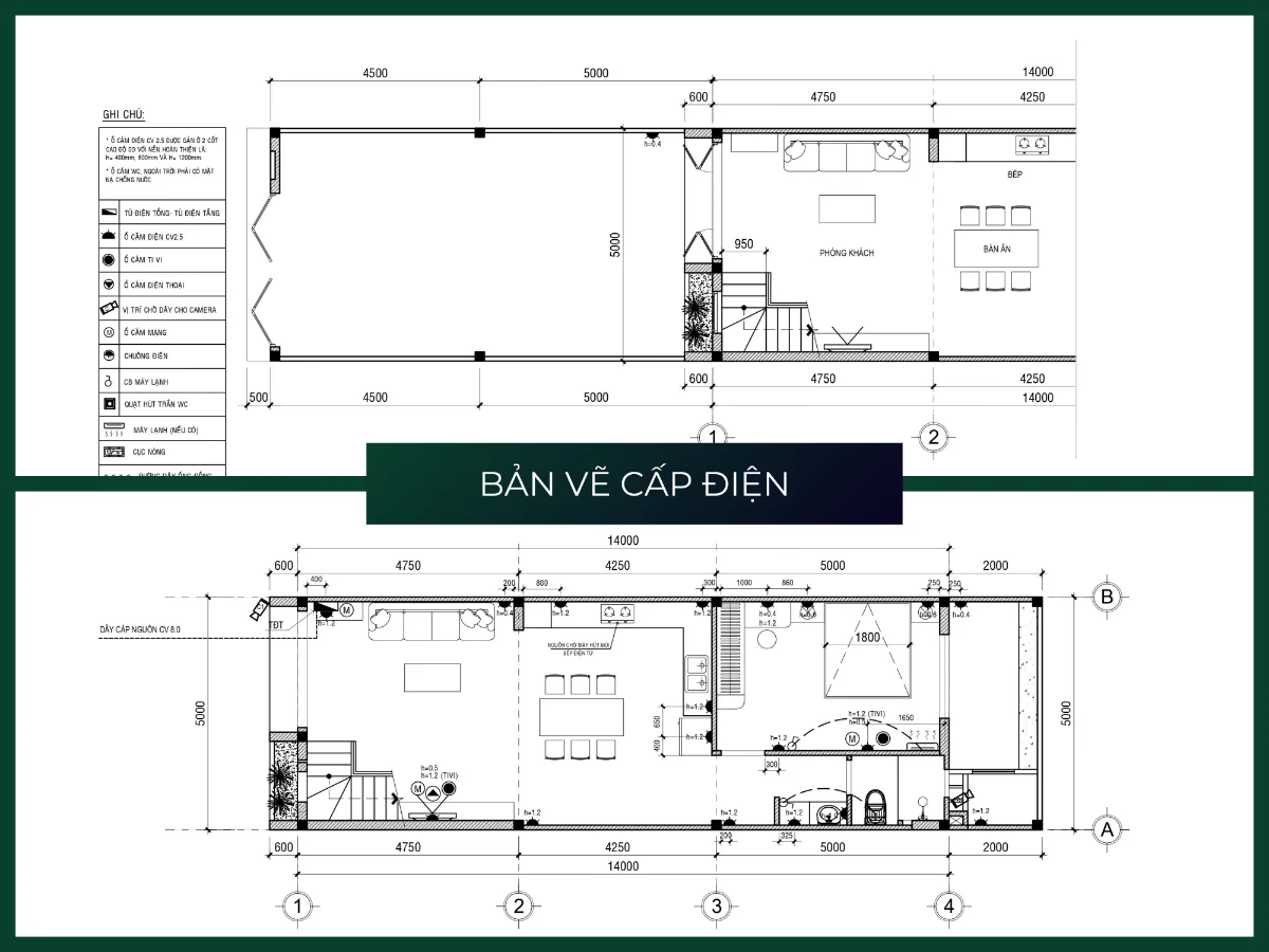 Bản vẽ này chủ yếu đi vào phần thiết kế các hệ thống đường dây điện đi qua những khu vực nào, vị trí lắp đặt phù hợp trong căn nhà. Không những thế, nó còn định hướng các hệ thống công tắc và các đường ống nước cần có cho việc thi công lắp đặt. Bản vẽ này có tính khái quát và định lượng số lượng hơn.