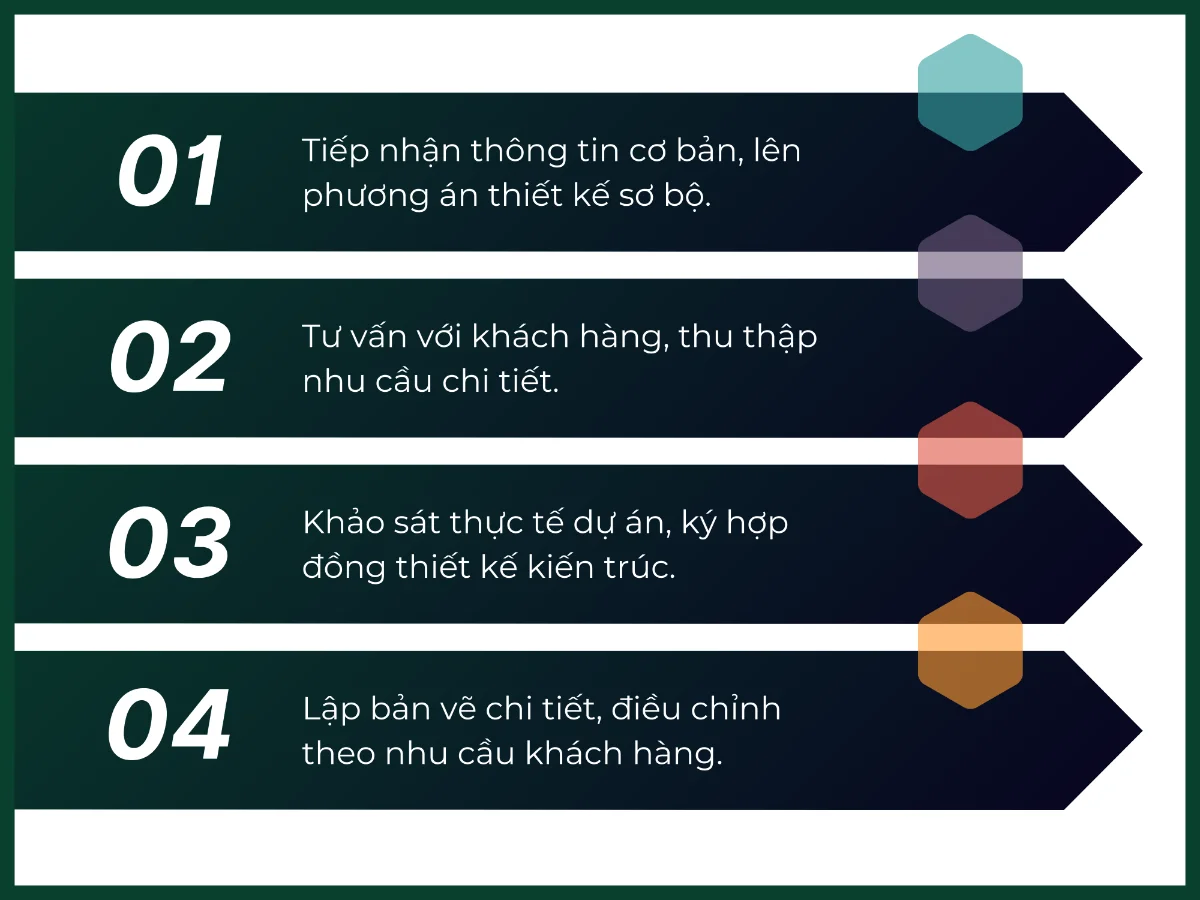 - Bước 4: Lập bản vẽ thiết kế kiến trúc chi tiết, điều chỉnh theo nhu cầu khách hàng.